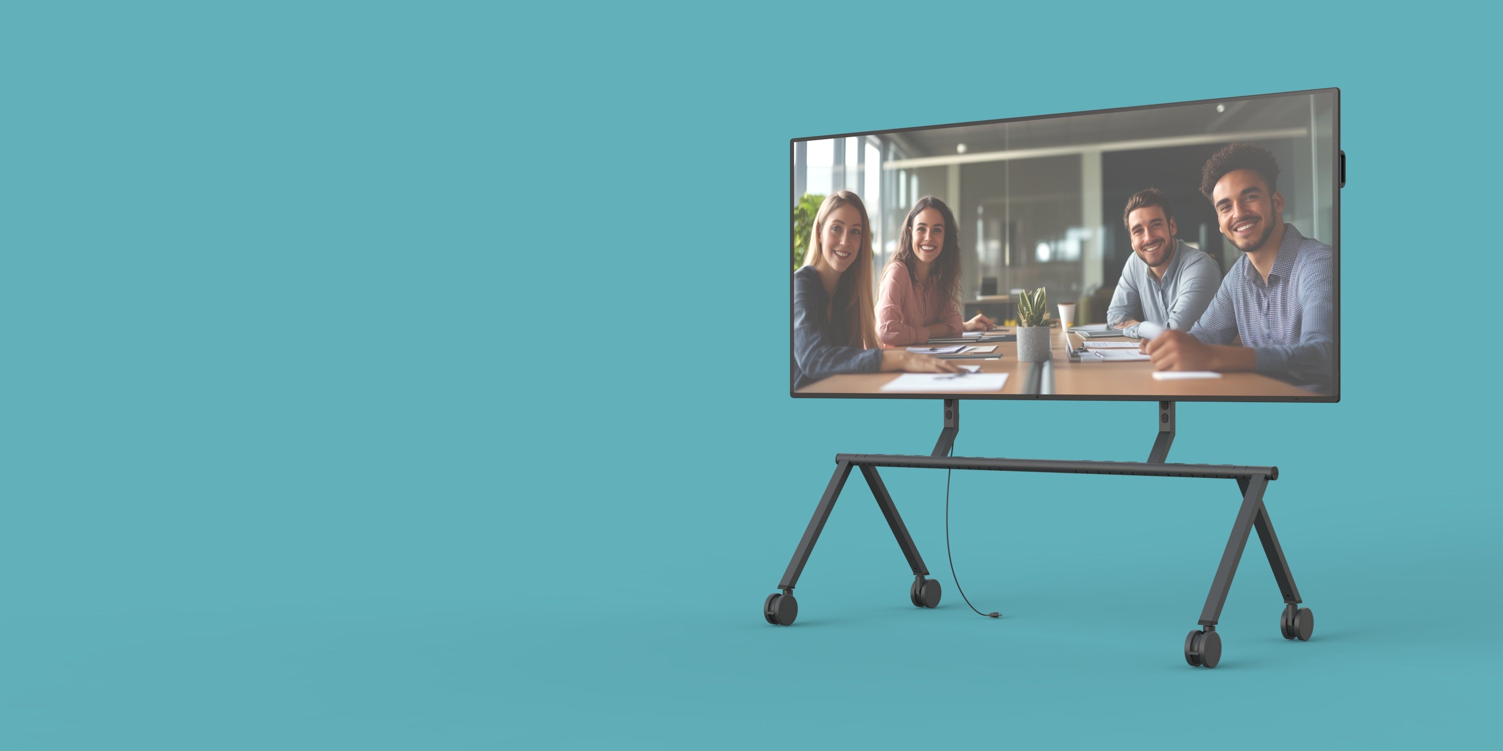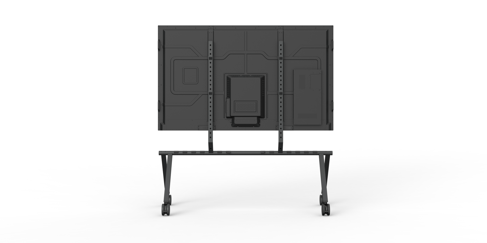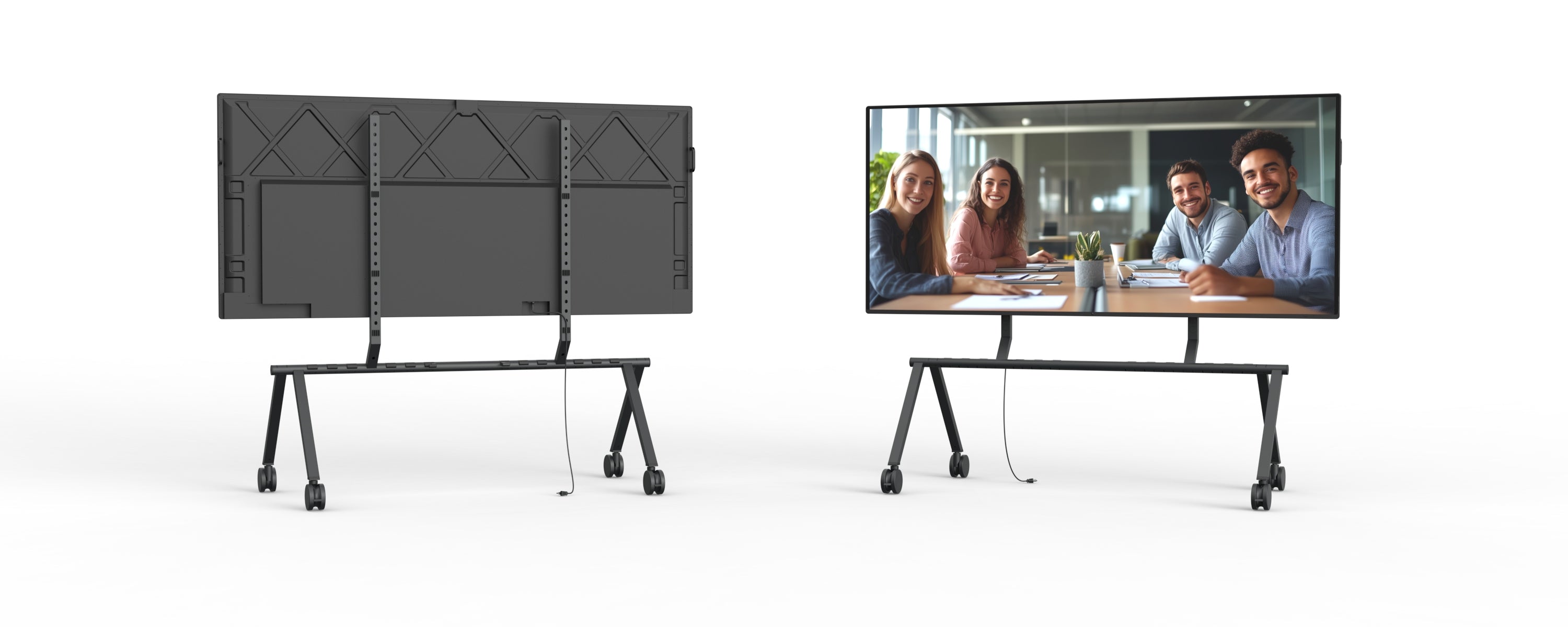When not in use, multiple stands can be stacked together more compact than any other rolling stand, freeing up valuable floor space. Perfect for event venues, all‑hands meetings, and organizations that share their largest displays throughout the workspace.