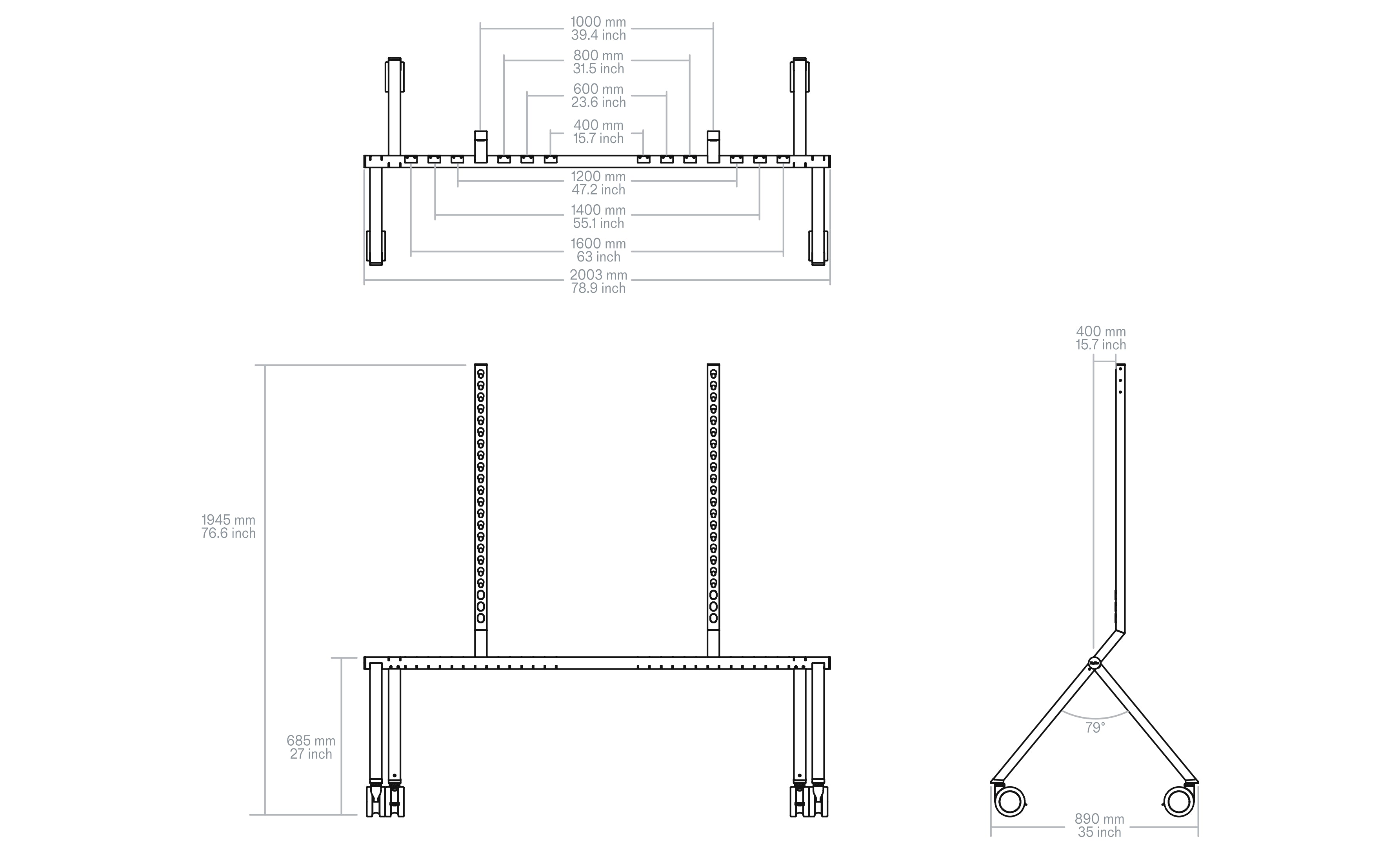 Our adjustable column & beam architecture supports displays with mounting patterns from VESA 400 to VESA 1600. MkII keeps the broad compatibility you rely on—so you can standardize on one rolling stand across a wide range of display brands and models.
