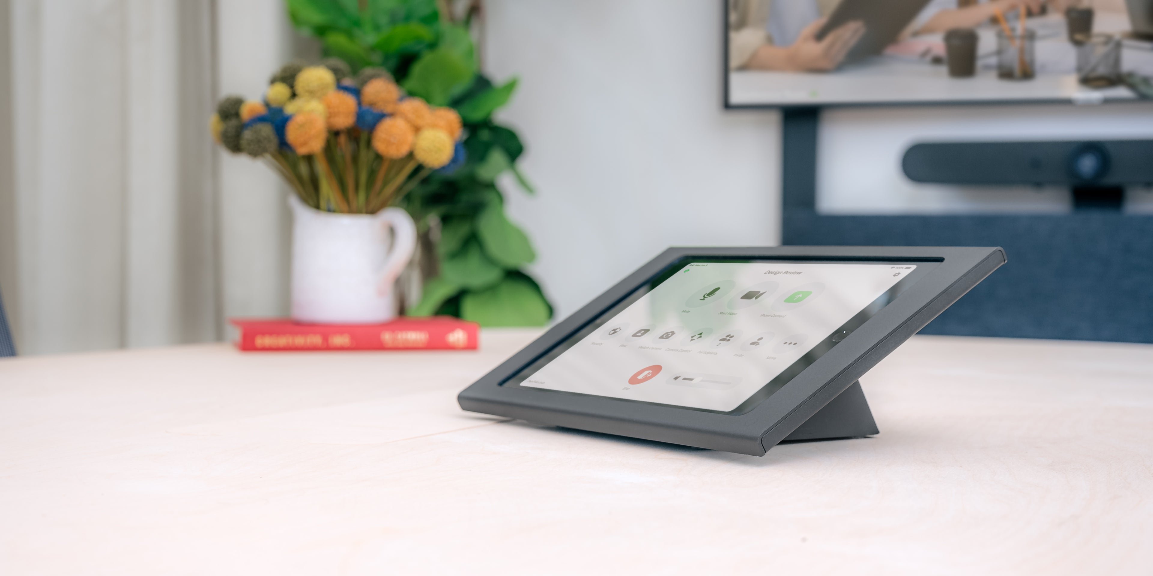 Zoom Rooms Console’s 30-degree angle is perfect to control your video meeting and to create a last-minute attendee invite. It also keeps your controller from blocking the view of your meeting participants.