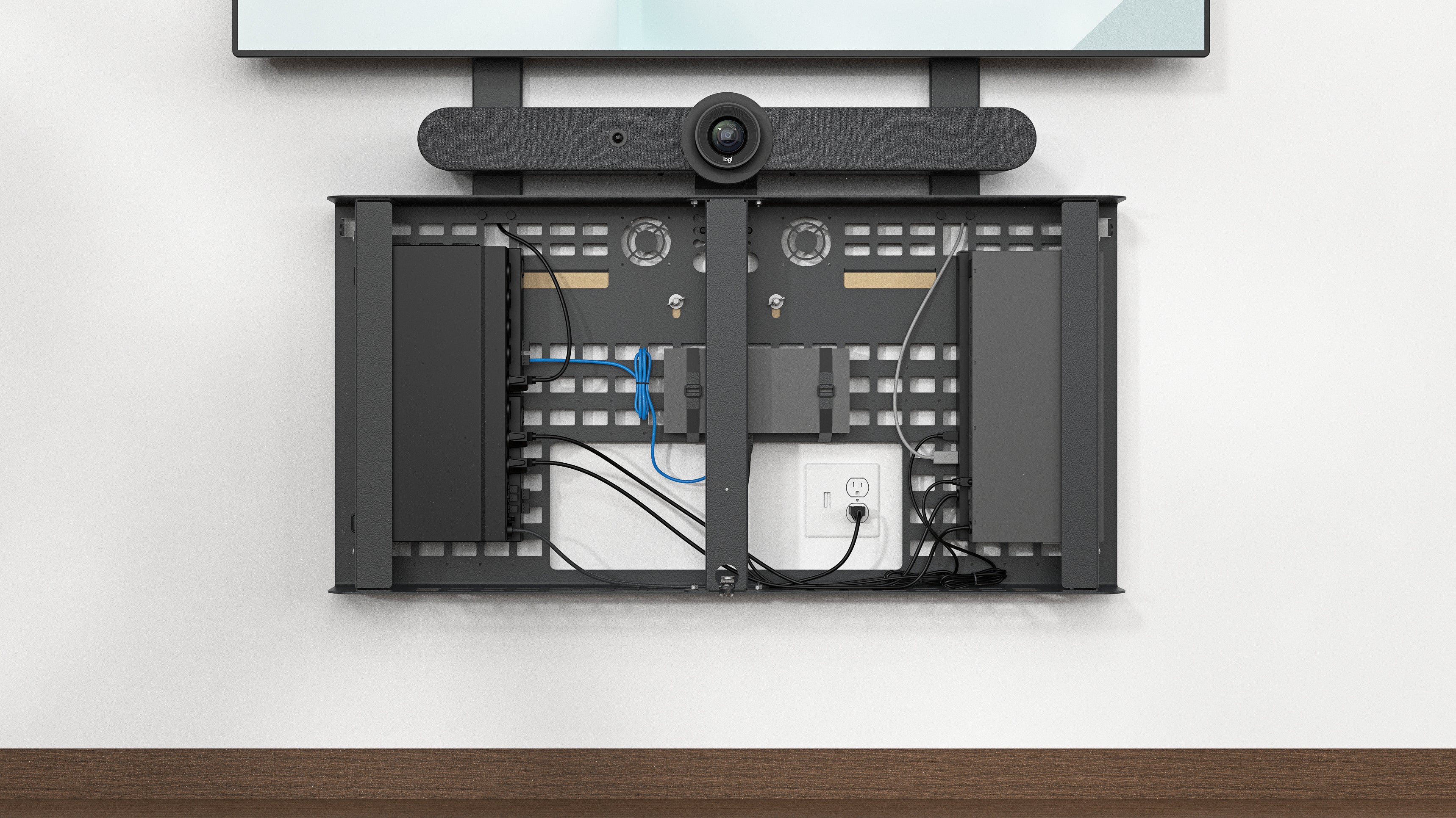 With the included, optionally installed, cable chases you can even route HDMI and power cables to your display. All without routing a single cable within your walls.