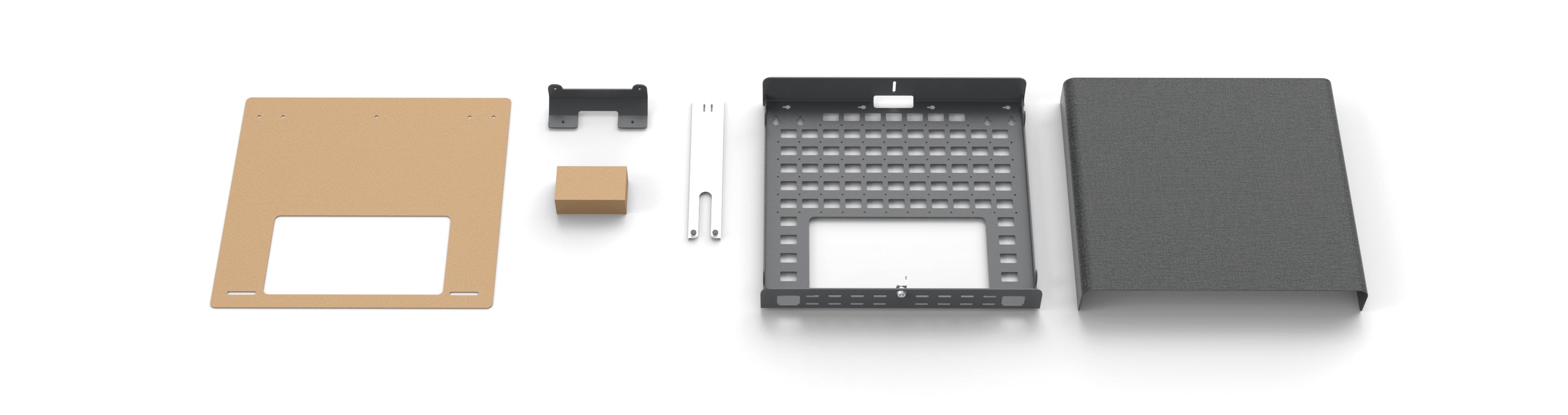 Every AV Credenza Mini ships with two special camera brackets for rigidly mounting Logitech Rally Bar, Rally Bar Mini, and the Audio Bar and Smart Camera for Google Meet Series One Room Kit. Other cameras and appliances can simply stand atop Credenza Mini’s top surface.