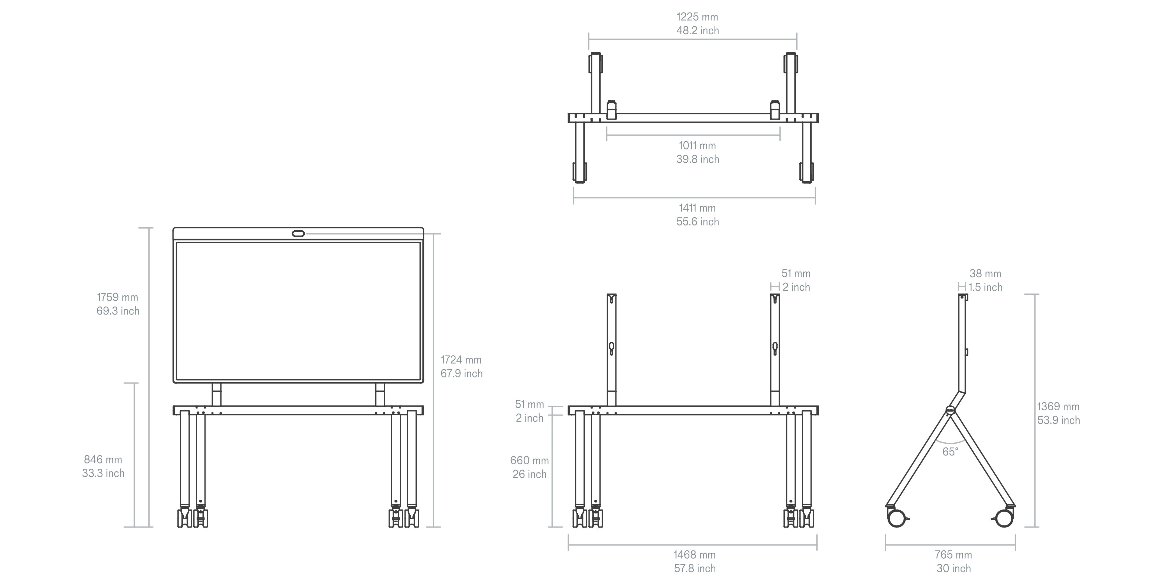 Purpose-built for Neat Board Pro, this stand offers a refined, rock-solid, and highly mobile platform that supports Neat’s advanced collaboration features. Its broad stance provides optimal touch-screen accessibility and ergonomic reach.