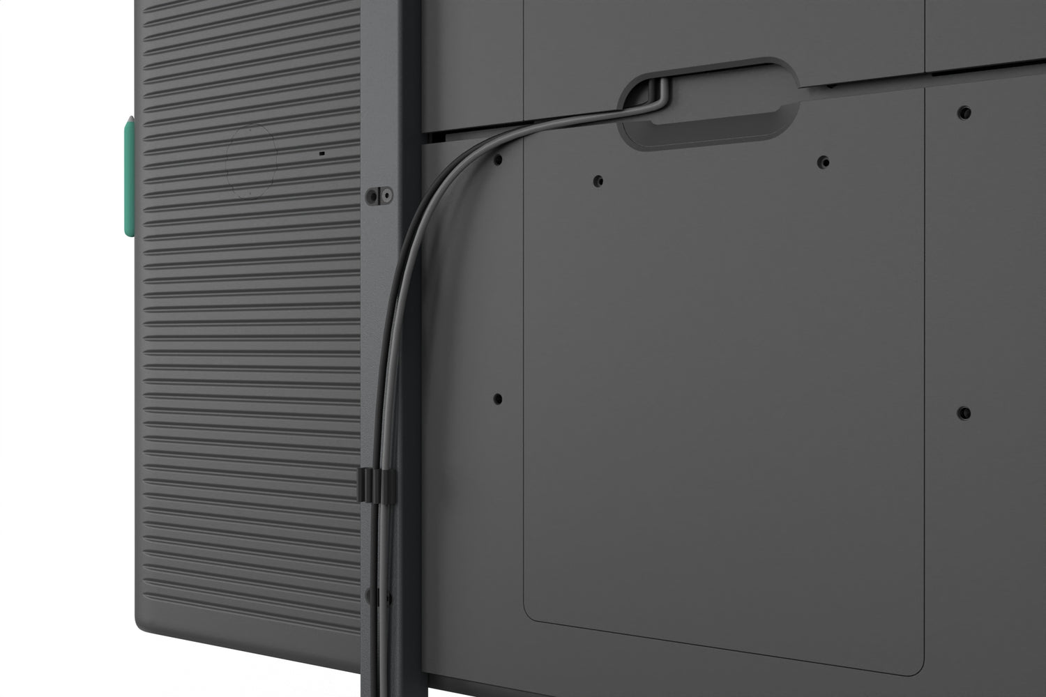 Keep your setup professional and organized with integrated cable management. Purpose-designed channels guide power, USB, and Ethernet cables neatly down the stand’s columns, protecting them from snags and maintaining a clean, clutter-free appearance from every angle.