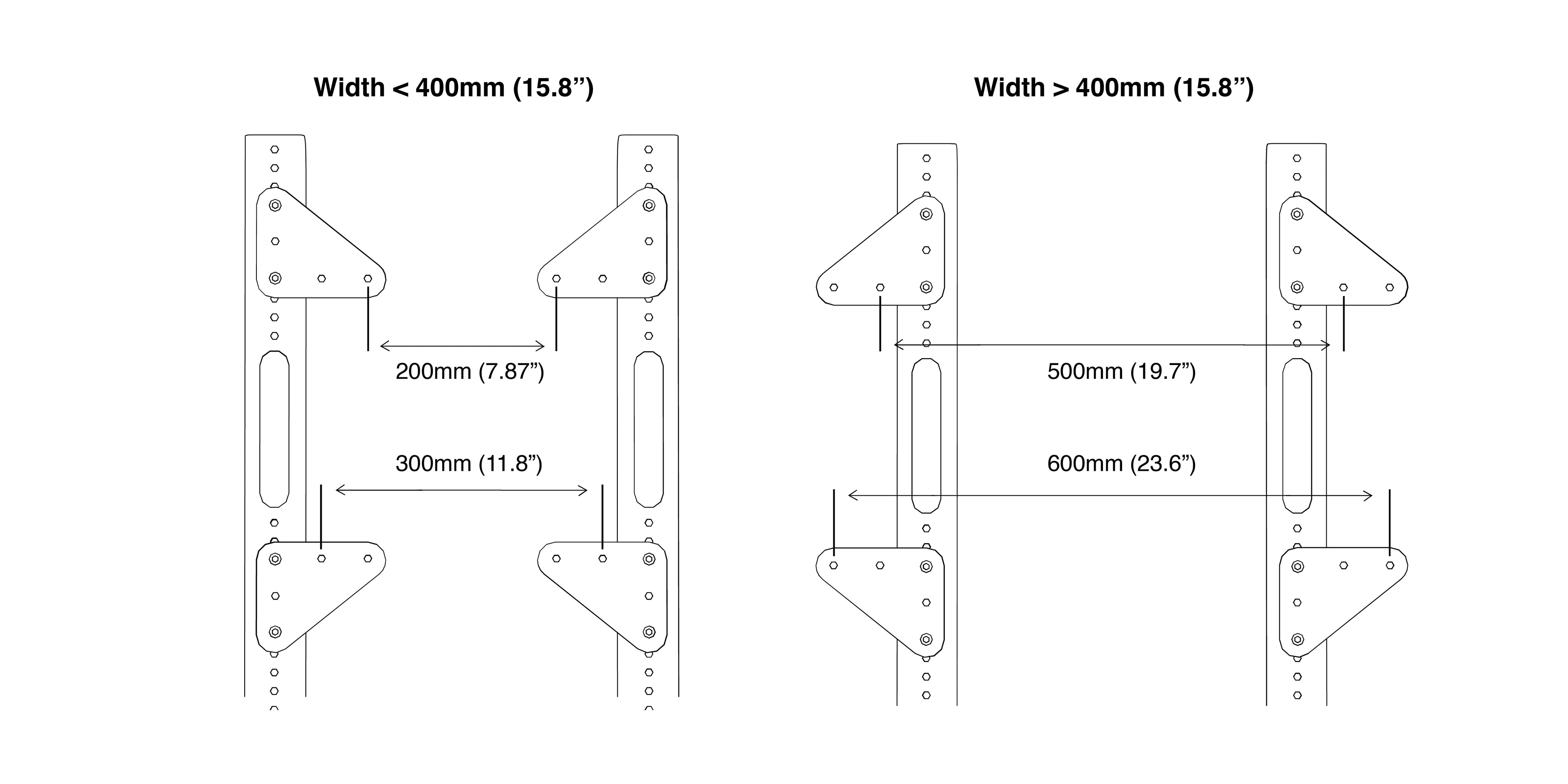Want to use Heckler AV Cart, but your display does not have a VESA 400x400 mounting pattern? No problem. These strong, simple adapters do the trick. With these adapters, you can mount displays with a horizontal and vertical mounting hole spacing of 200, 300, 500, and 600 millimeters. Not compatible with Dual Display Kit for Heckler AV Cart.